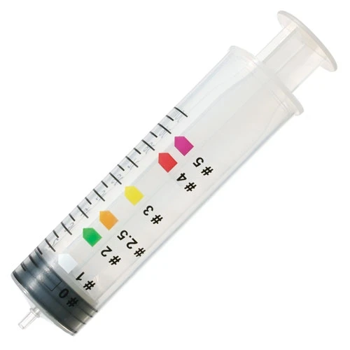 Konnektor und Spritze sind farblich aufeinander abgestimmt und vereinfachen das Belüften der Cuffs mit dem empfohlenen max. Füllvolumen.